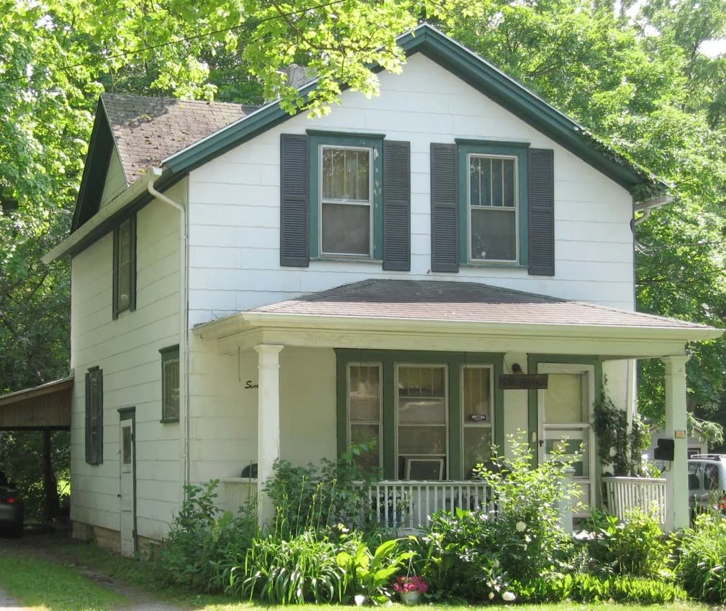 Constructed in about 1926, this 1 ½ -story house has a cross-gable roof. The one-story frame garage is also of early construction.
