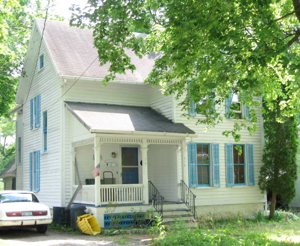 This two-story residence was built in about 1895. It has an L-shaped configuration with a cross-gable roof. The entrance porch has a turned spindle frieze spanning the façade of the ell.