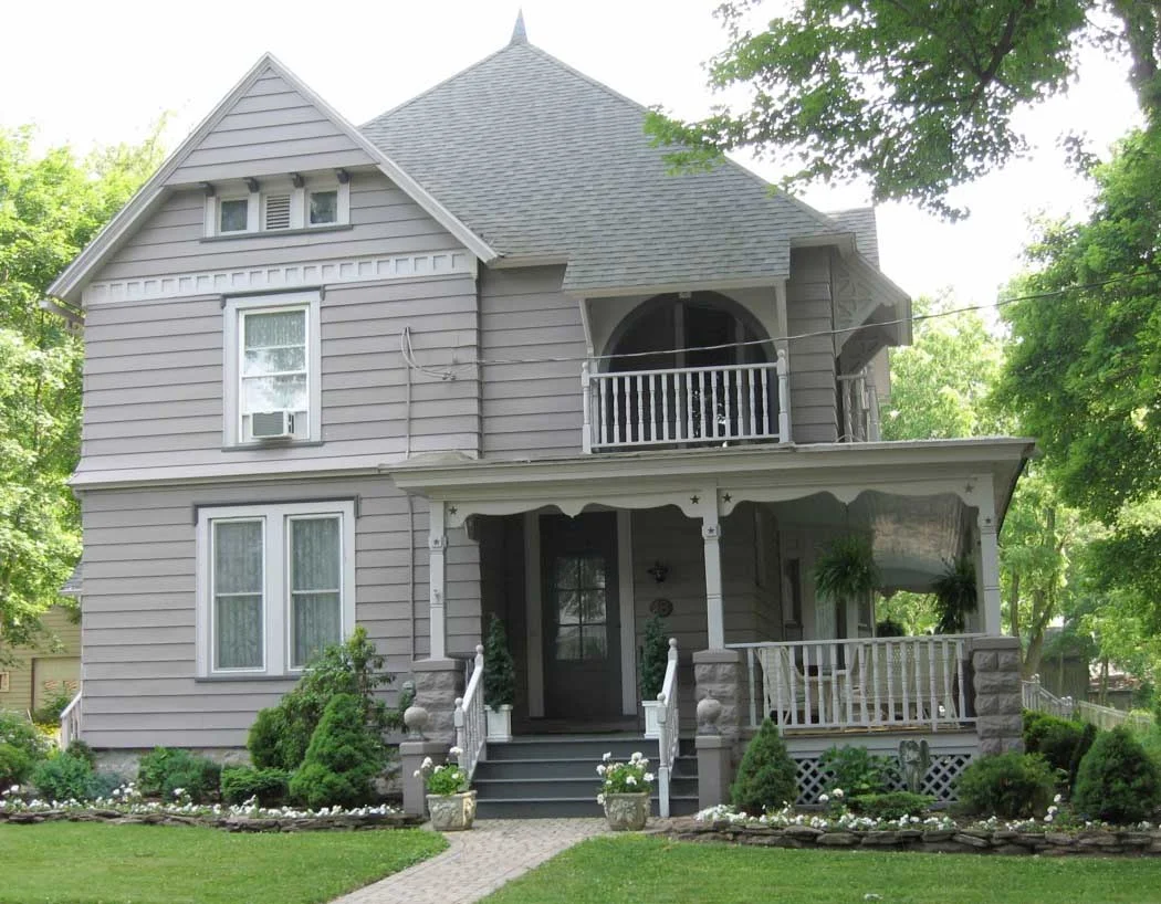 Shortly after Oak Street was opened, John Vickers, a prominent builder, purchased this lot for $500. About 1896 he built this Queen Anne style house for his own residence. He was also the contractor for the Geneseo Building, the former RG&E Building, the old County jail and several other local structures. After the deaths of Mr. and Mrs. Vickers in 1914 and 1921, the house became the property of their son, J. Hurbert Vickers. He and his wife lived in a house they owned at 33 Main Street. They rented out 16 Oak Street. In 1932 they moved here and did some extensive remodeling. In 1943 it was sold to Luther Robinson who sold it to Raymond Martini in 1949 who sold it to Guy and Dorothy Mustari in 1951.