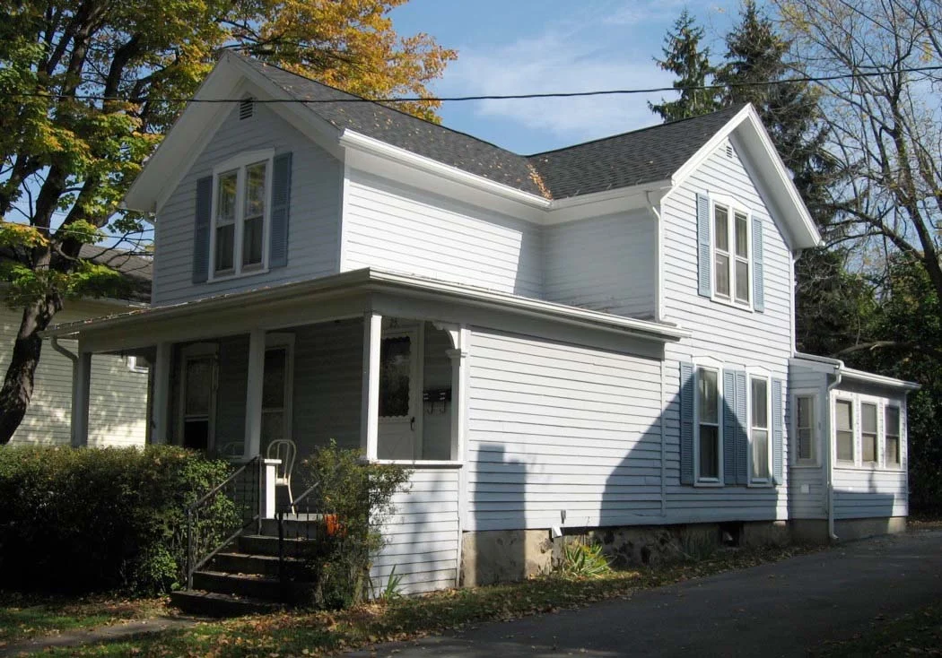 According to a report in the Livingston Democrat, R.G. Patterson built this house sometime after 1875 on the garden of the old Dickey place. (The Dickey place was on South Street.) It is not clear whether the Pattersons lived in the house. In 1923, Arthur W. Ayres purchased the house from the Patterson family. The local newspaper reported that he had been living in the house for some time prior to the purchase. In 1929, Mr. Ayres sold the “desirable residential property at 25 Elm Street” to Irving Relyea. Mr. Relyea was an executive with Beldon and Co. He made extensive improvements and in 1937 Earl Stowell purchased the home.