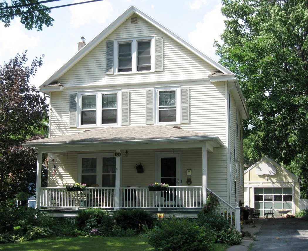 The date of construction of this house is not known, but was likely after 1902. The property was acquired by C.O. Beach in 1892 from W.E. and Hattie Booth. No house was shown here on a 1902 map of the village. Mr. Beach’s daughters, Louise Chapin and Ella Pearson, sold the property to M. Earl Stapley in 1921. He deeded it in 1925 to M. Earl and Mable J. Stapley. In 1945, Mabel J Stapley sold it to James and Jean Hanna.