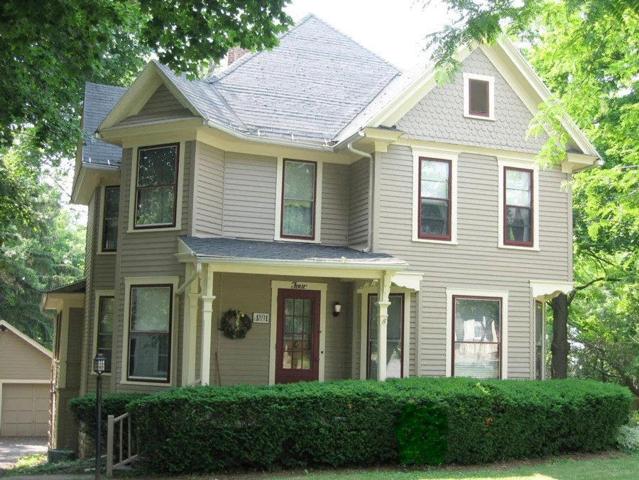 Built in the 1890s, this house is a two-story frame residence with Queen Anne style features, a multi-gable roof with prominent cross-gables, asymmetrical configuration, and a variety of fenestration and window types.