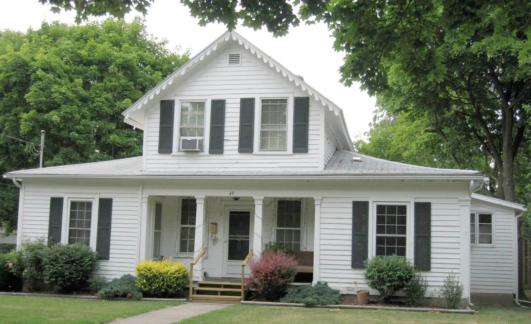 This house was built about 1866-67 by Hiram Leonard, a skilled contractor and builder of his time. In 1868 he sold it to Horace Dodge, who the following year sold it to Thomas Hanby and his wife Jane. Thomas Handy was trained as a gardener in England. He had come to this country soon after his marriage and took care of the gardens and grounds at Hartford House for General Wadsworth. In 1848 he moved to Sodus and in 1869 retired and returned to Geneseo and bought this house. About 1878 the property was acquired by W. W. Killip who never lived here but probably rented it since he and his family made their home at 32 North Street. A few years after his death in 1913 the house was sold to William and C. Ella Carson and remained the property of the Carson family many years.