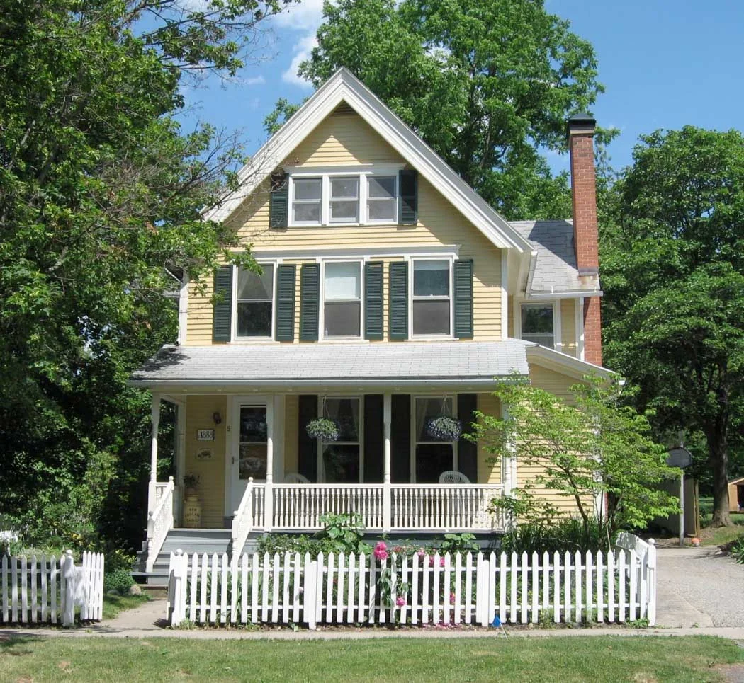 In 1887, William Crystal, a blacksmith, purchased the lot at 5 Elm Street from Mrs. Anna McBride who owned and lived in the adjoining house (1 Elm Street). At that time, the lot contained a carpentry shop situated well back from the street which had been used by Mrs. McBride’s late husband, Hugh, a master carpenter. William Crystal moved the shop nearer the street, enlarging it and converting it into a dwelling. In 1894, it was purchased by Helen Savage, a young widow with two small children. She died of “consumption” in 1896 and the house was sold by the children’s guardian to Dr. and Mrs. Charles Fraley. Dr. Fraley was a dentist who practiced in Geneseo from 1900 until his death in 1936. In 1955, the house was purchased by Mrs. George Abbott and two years later she sold it to John and Gertrude Black.