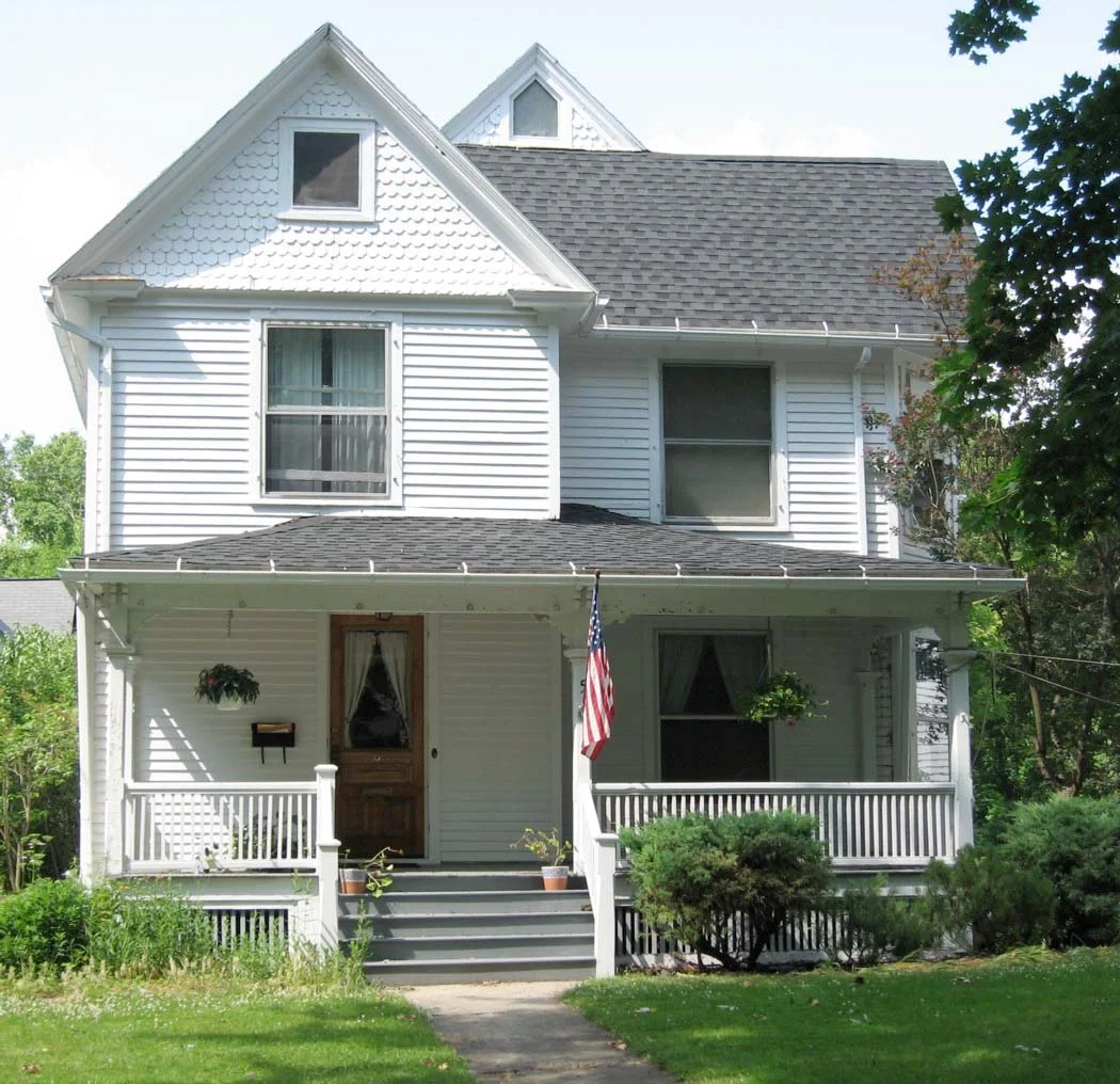 Oak Street was opened in 1889 but it was not until 1925 that it was fully developed to Highland Road. This Queen Anne style house, built by Thomas Milliman in 1890, was one of the first constructed on the new street. At the time there were no sidewalks, sewerage or water system. Mr. Milliman operated a grocery store on the west side of Main Street. In 1915, the house was purchased by C. B. Newkirk and sold the following year to James and Cora Dwyer. James Dwyer ran a meat market on Main Street and also served as Postmaster for many years. His wife succeeded him in this position after his death.