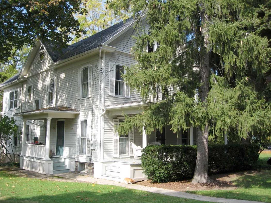 Mrs. Patience Goheen was the 10th child and only daughter of William and Elizabeth Doty, early settlers in Groveland. She married a Colonel Charles Goheen of Groveland in 1837. They moved to Geneseo into 14 Elm Street with their three daughters and a son in 1869. In 1876, two years after the death of her husband, Mrs. Goheen engaged a builder named Durkee to erect the original part of this house at 6 Elm Street. One of the daughters, Mary, married Otto Hopkins in 1878 and they moved to Ohio where he practiced law for several years before returning to Geneseo. Mary and Otto’s son Charles later married Elizabeth (Ate) Chapin of Geneseo. Mrs. Goheen’s other children never married and continued residing with their mother until her death in 1903. Soon after that, they enlarged the house considerably and continued to live here. Fanny Goheen outlived her brother and sisters and a year before her death in 1953, at the age of 92, she and Mary Hopkins, her niece, sold the house to Mr. and Mrs. Grant Parker in 1955 and the Parkers sold it to James and Claire Chen in 1973.
