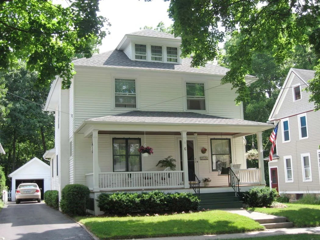 This two-story frame dwelling was built in about 1914. The one-story frame garage was constructed at about the same time.