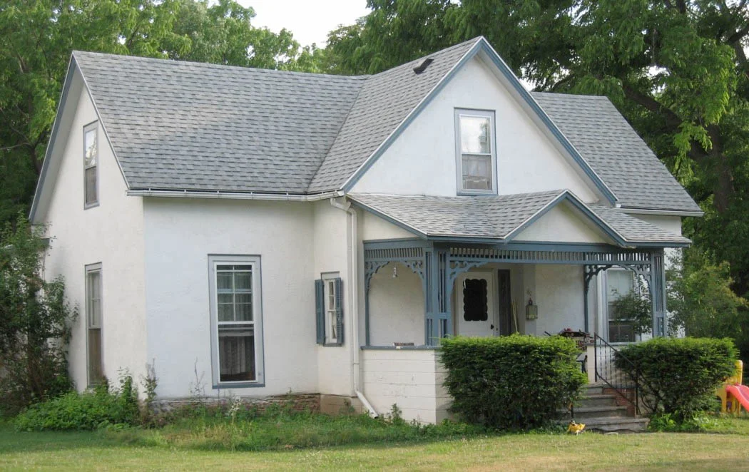 No house is shown on this lot in the Geneseo map of 1852, but the 1854 map shows a home in the name of M. Decker. The lot had been sold to Elizabeth and Morris Decker in 1853, for the sum of $300. The Deckers lived here for the rest of their lives. Morris Decker came to Geneseo in 1847. According to an 1868 directory, he was a carpenter and joiner, and Elizabeth was a milliner. Elizabeth died in 1872, and Morris in 1878. In 1879, Ezra and Angeline Decker sold the house to Anna Decker for one dollar. (Presumably all three were heirs.) Willis Weeks purchased the house in 1905. He died in 1906 at the age of 53. His heir, Julia Weeks, sold the house to Joel Burnett, who sold it in 1921 to William H. and Mary Stewart. In 1921, the local newspaper reported that Wm. H. Stewart, lately with Geneseo Hardware, was now in the plumbing and heating business for himself in his house on North Street. Mr. Stewart moved to Filmore in 1929.